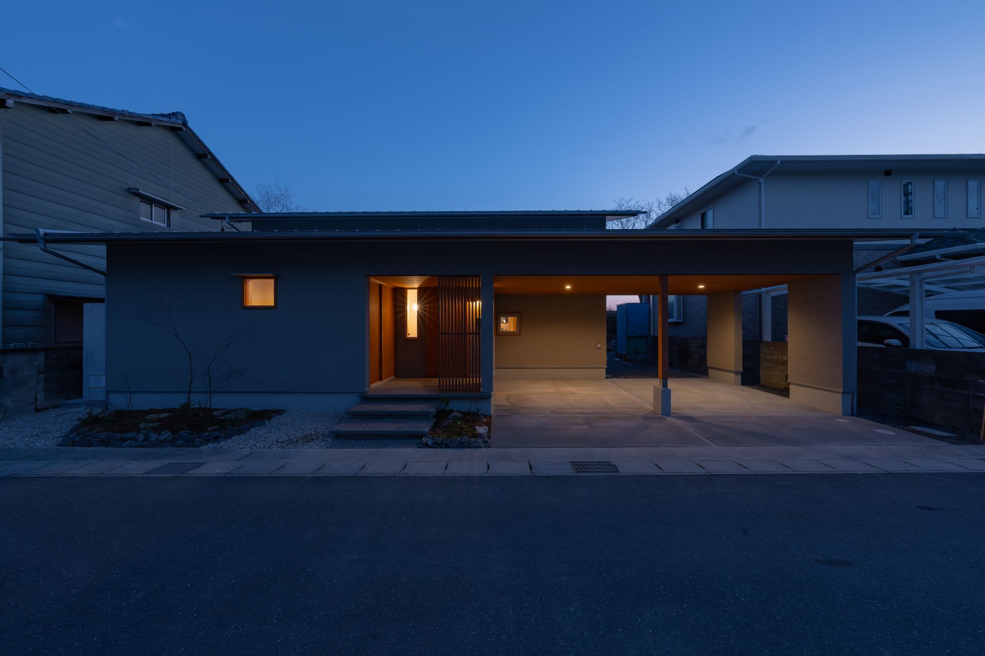 23坪の平屋建てに、2台分のガレージも備えた平屋。
