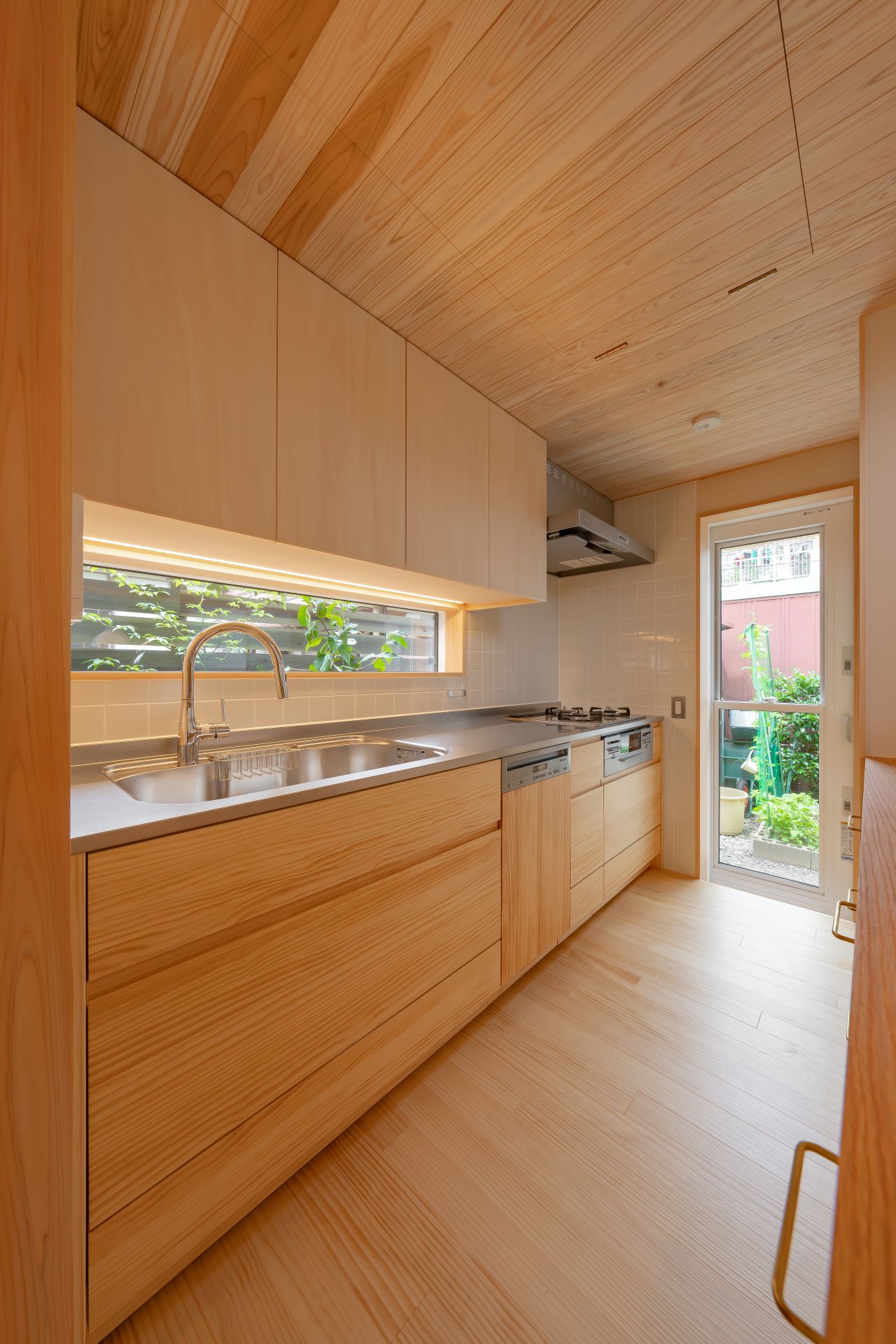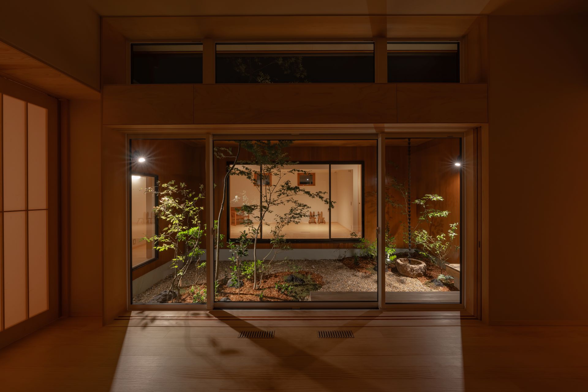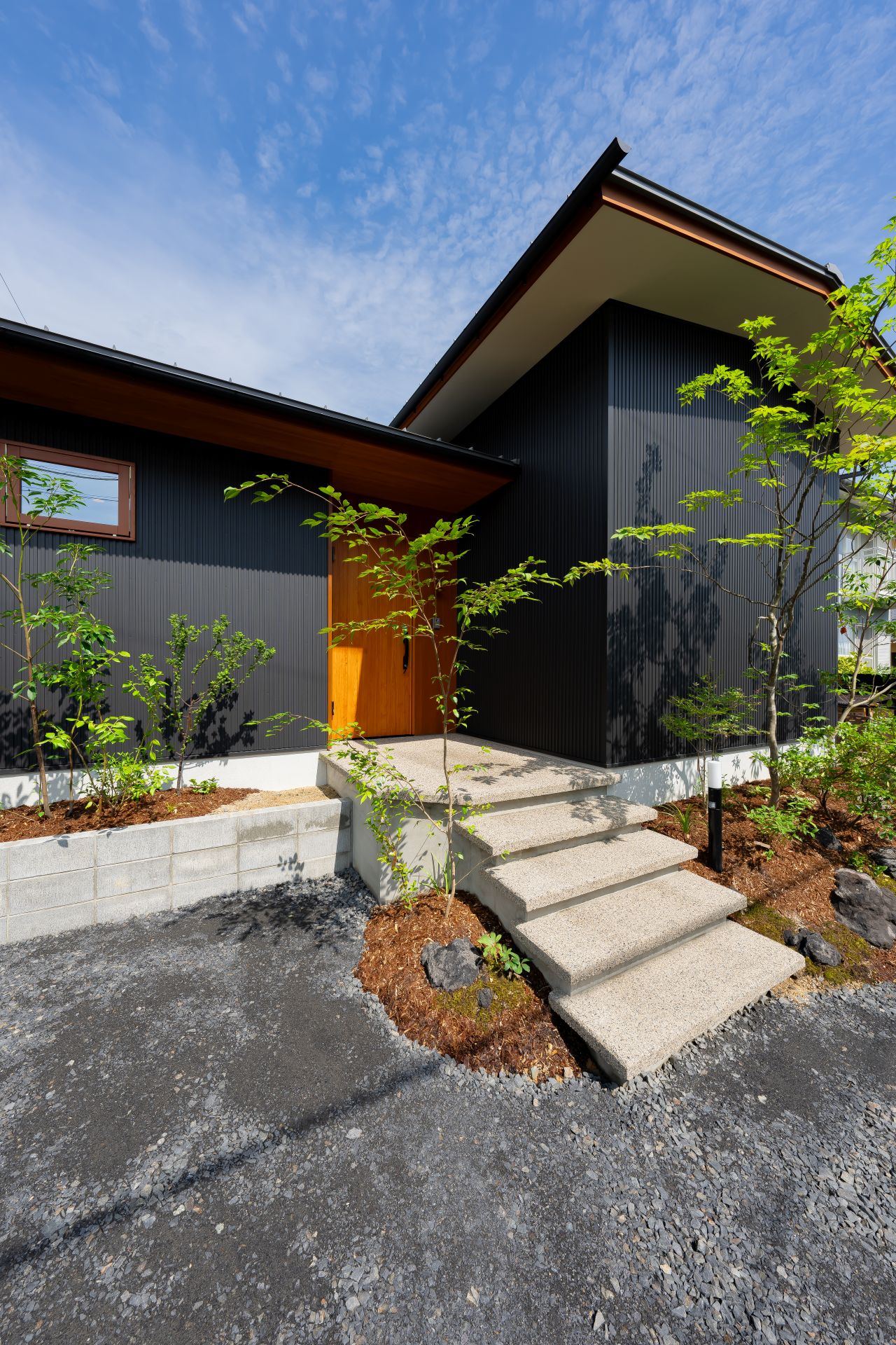 木々が植え込まれた中庭はプライバシーを重視しながらも、明るく、開放感を感じられる設計は、家族が心地よく過ごせる居住環境を提供します。